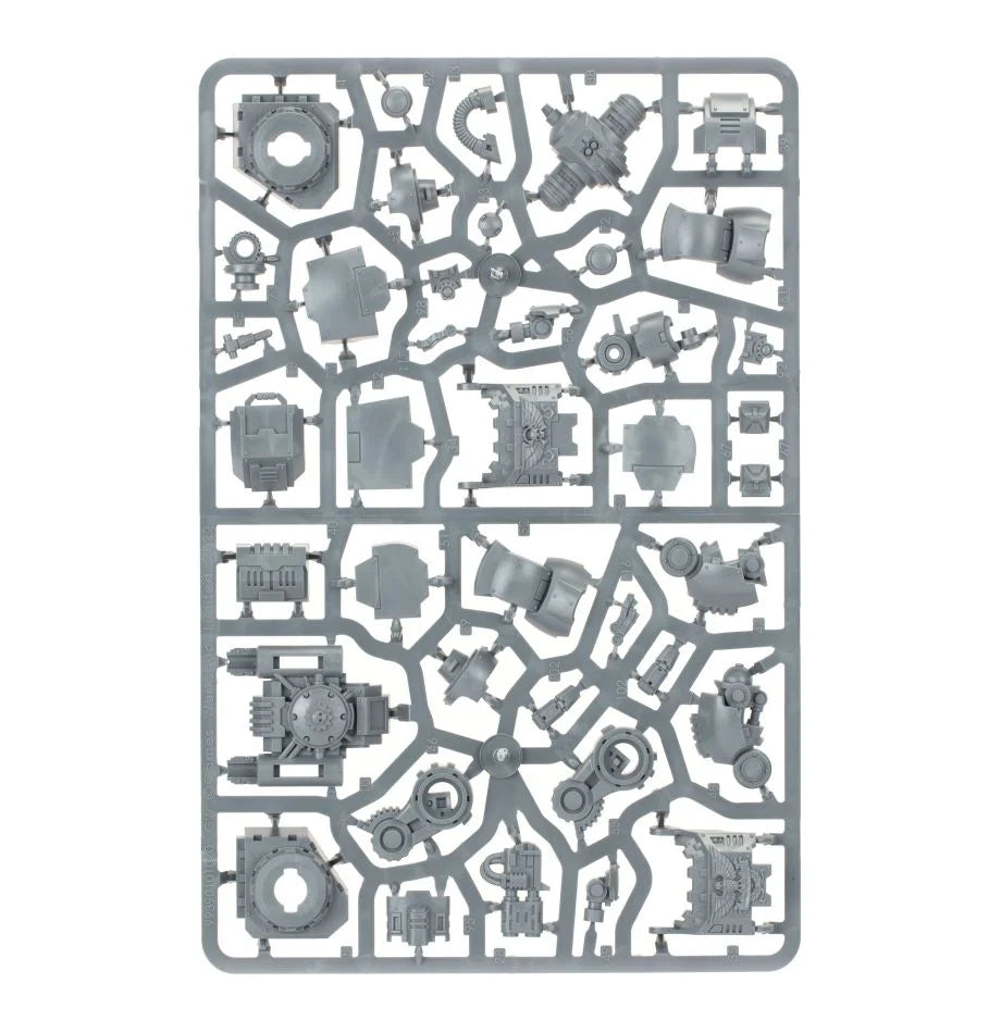 This multipart plastic kit builds one Brutalis Dreadnought, an imposing melee-focused war machine. This powerful walker can be equipped with armoured fists that feature integrated bolt rifles, or a pair of sharpened talons for shredding armour and infantry alike. It also sports twinned Icarus ironhail heavy stubbers atop its hull, and a pair of chassis-mounted weapons – either heavy bolters or tank-busting multi-meltas.